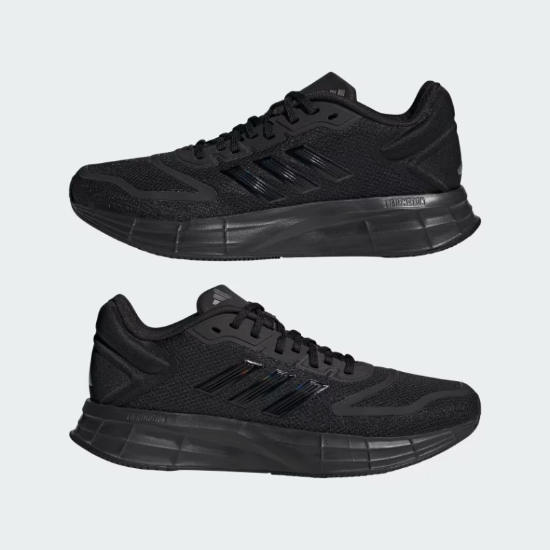 The adidas Duramo 10 supports your feet with a sandwich mesh upper for comfort and breathability, with no-sew overlays for added structure