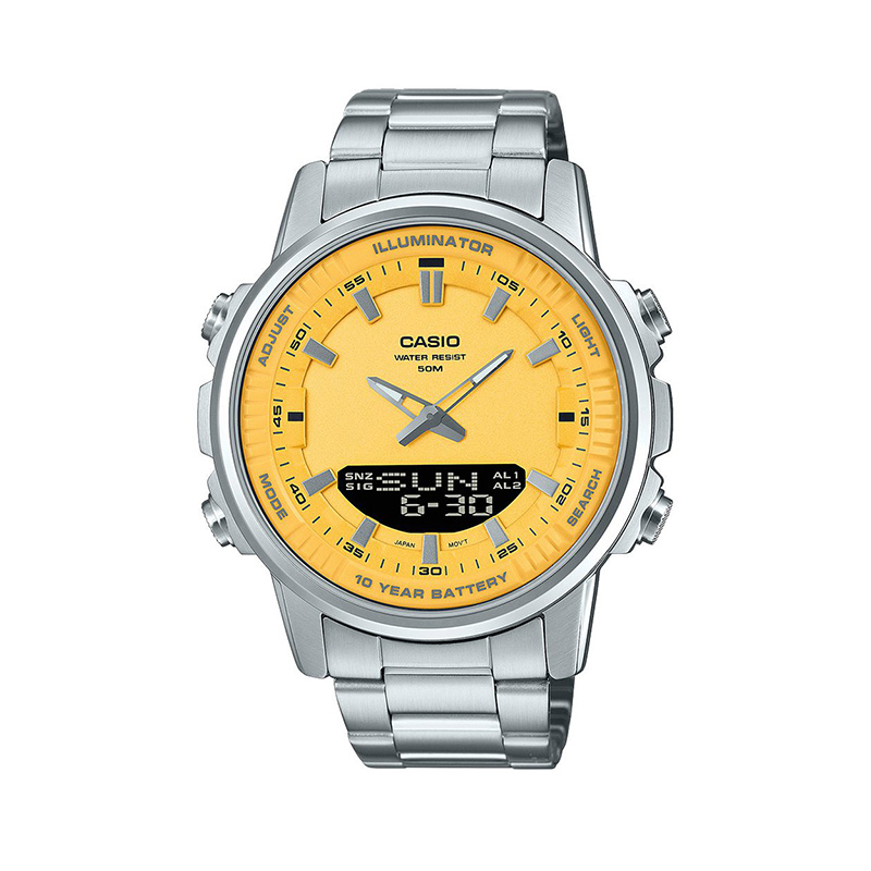 Casio AMW-880D-9AV برای مردی ساخته شده که زمان را نه فقط اندازه میگیرد، بلکه آن را زندگی میکند. طراحی آنالوگدیجیتال، قاب طلایی و بند استیل، در کنار امکانات کاربردی دیجیتال، محصولی خلق کردهاند که هم زیباست و هم هوشمند.