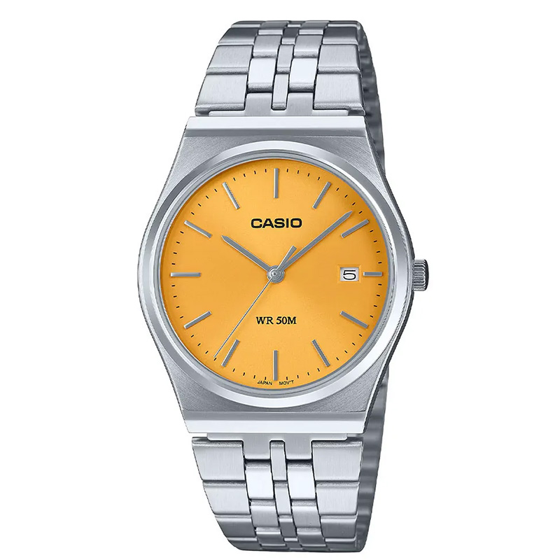 Casio MTP-B145D-9AV Men's Vintage Stainless Steel Yellow Dial 3-Hand Analog Watch