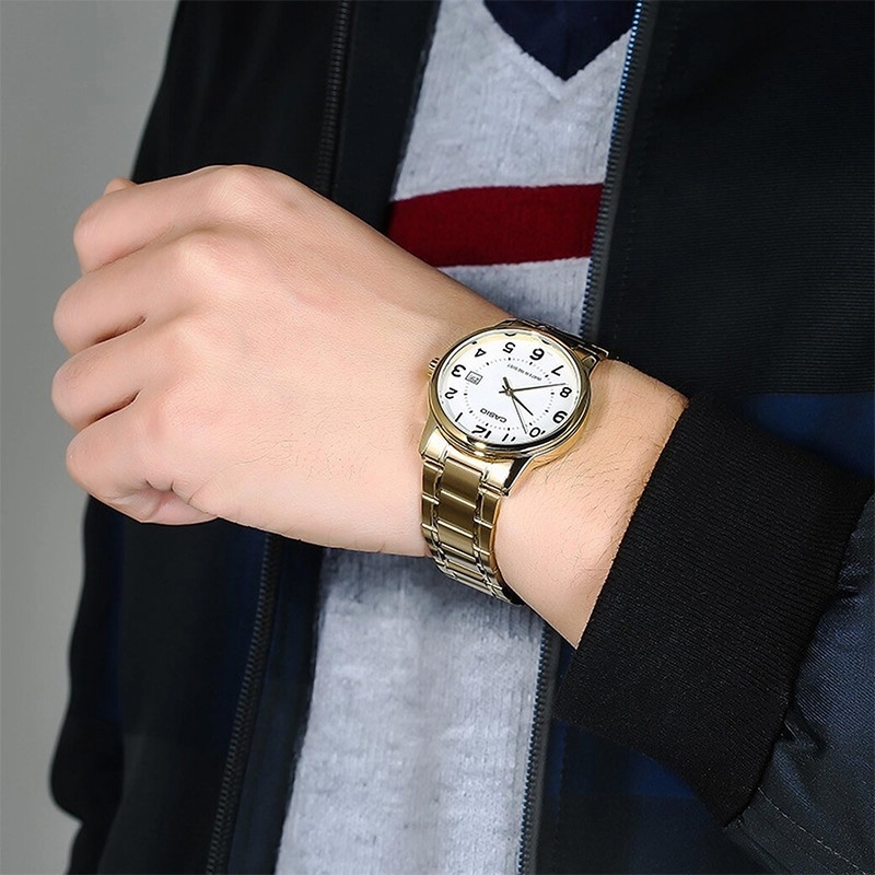 رنگ طلایی مدل Casio MTP-V004G-7B مرکزیترین بخش شخصیت محصول است. درخشندگی آن، نه جیغ است و نه کمرنگ؛ دقیقاً در حد وقار مردانه طراحی شده است. این رنگ در ترکیب با صفحهی سفید، تعادل کاملی میان روشنایی و اصالت ایجاد میکند. مردانی که این ساعت را انتخاب میکنند، آرامش و قدرت را با هم روی مچ خود مینشانند.