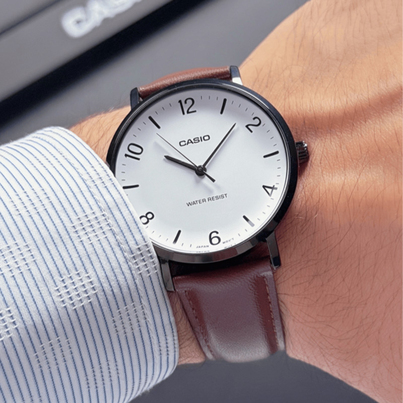 این مدل یکی از ظریفترین و مینیمالترین ساعتهای مردانه کاسیو است. صفحه سفید و ساده، بند چرمی مشکی و قاب نازک، آن را شبیه ساعتهای کلاسیک اروپایی کرده و استایل رسمی شما را کامل میکند.