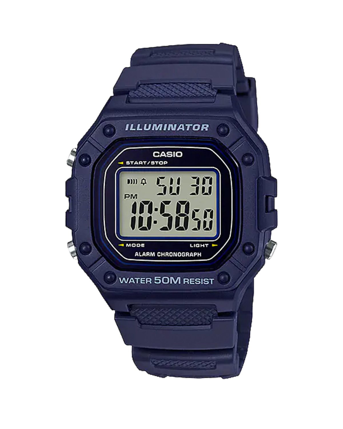 با وجود طراحی ساده، ساعت دیجیتال کاسیو مدل W-218H-2AVDF ضد آب با بند رزین مجموعه‌ای از امکانات کاربردی را در خود دارد که آن را به ابزاری دقیق و قابل اعتماد تبدیل کرده است: