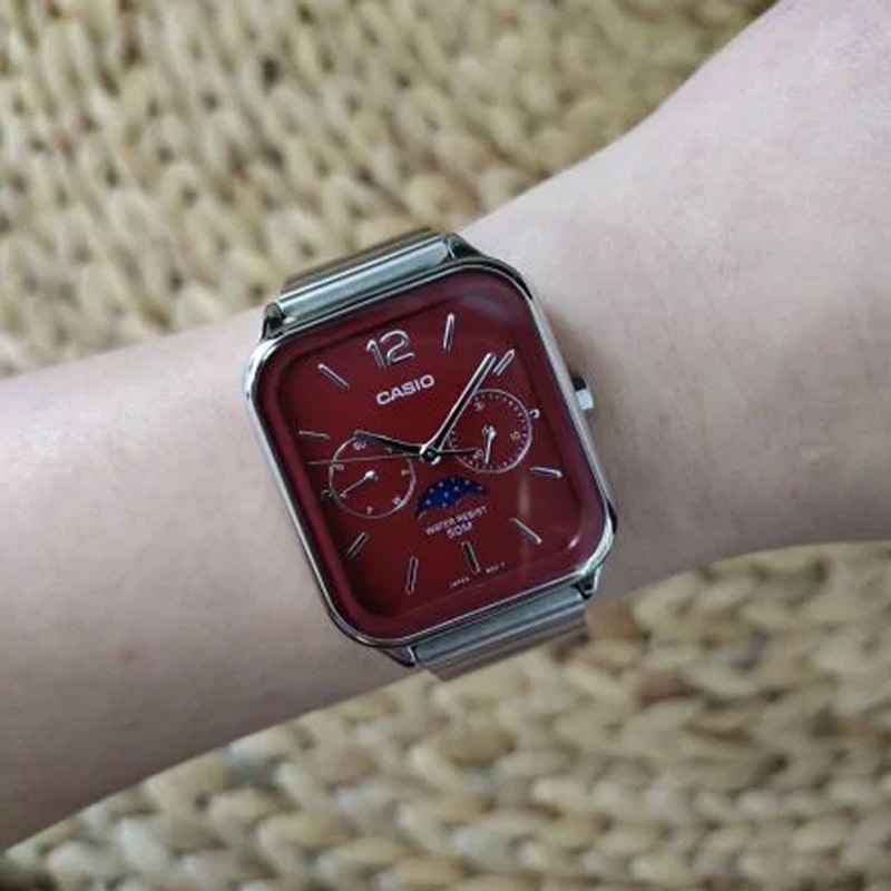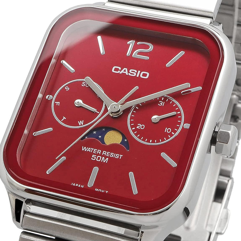Casio Men's Watch - MTP-M305D-4AVDF Red Dial, Silver Band