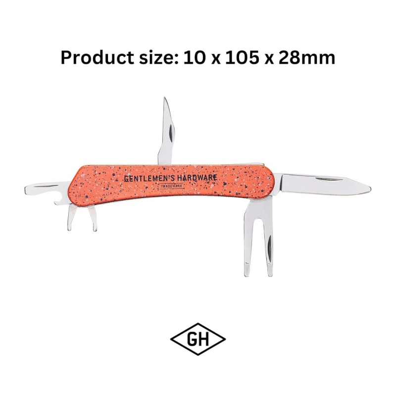 Gentlemen's Hardware Golf Multi Tool, GEN517, Includes Bottle Opener, Corkscrew, Screwdriver and More. Colour: Orange and Navy - Speckled Paint Design.