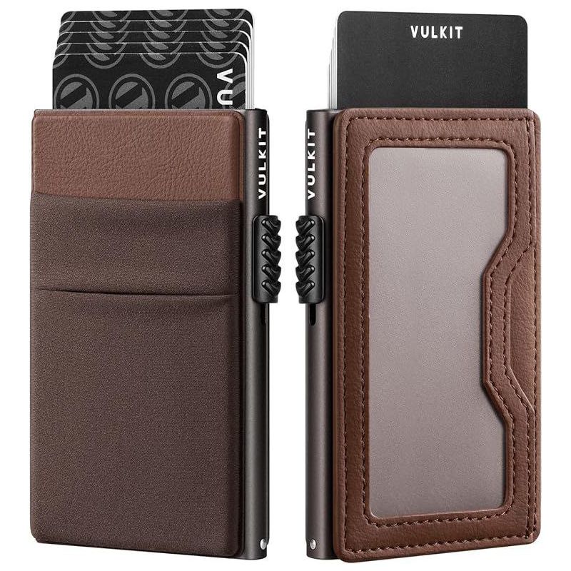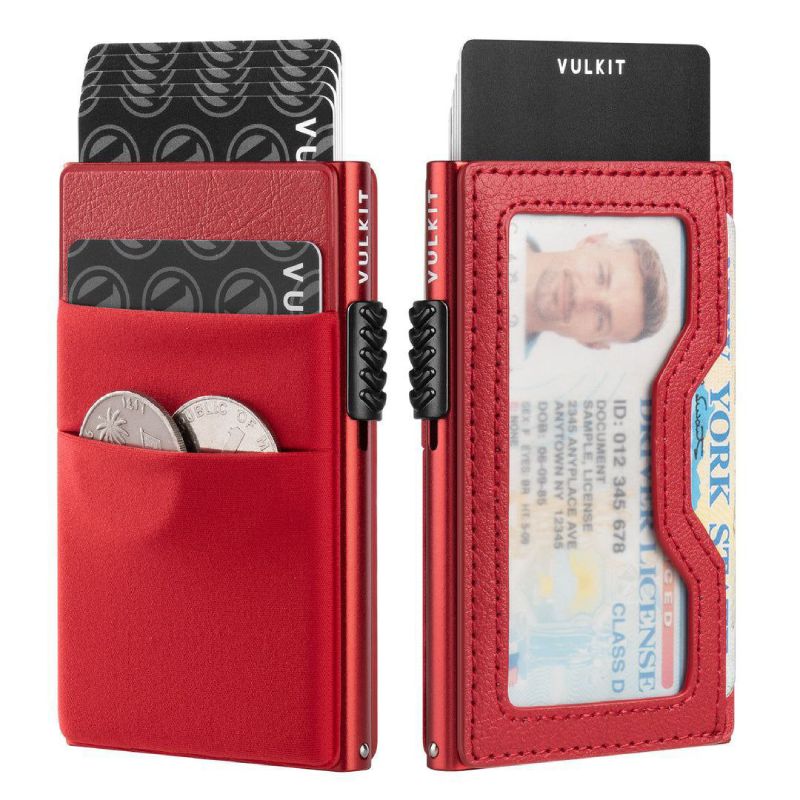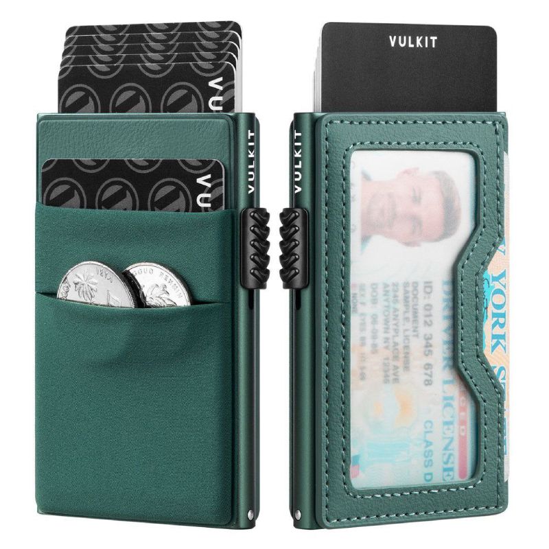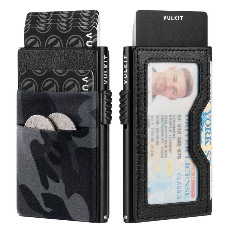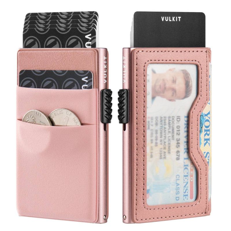 VULKIT Minimalist Wallet with ID Window & EDC Pocket Pop Up Card Holder RFID Blocking Slim Wallet Design for Airtag Cash Coins & Credit Cards