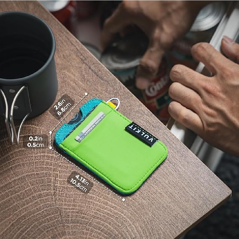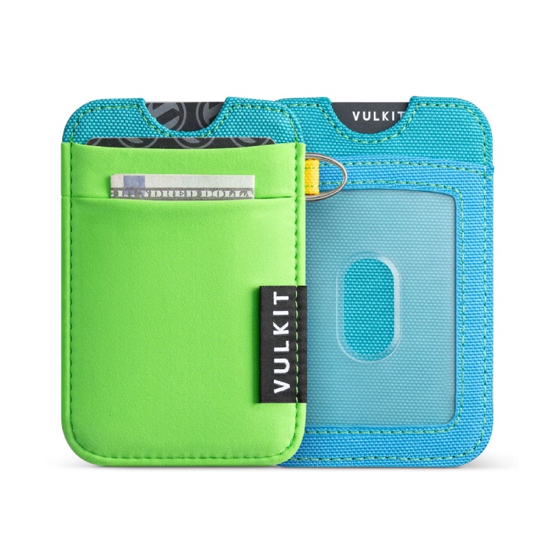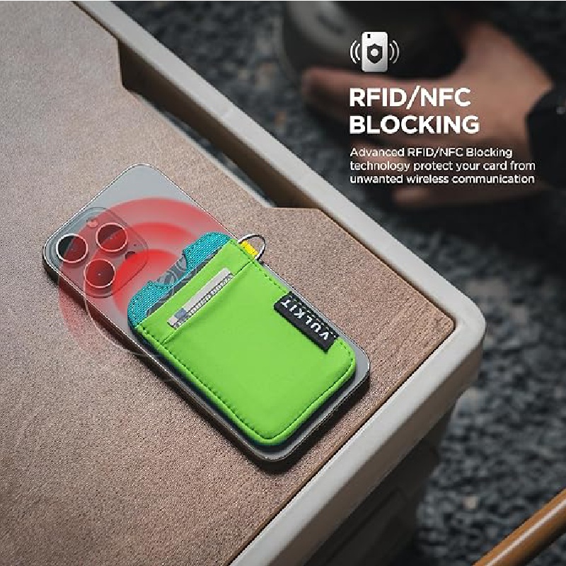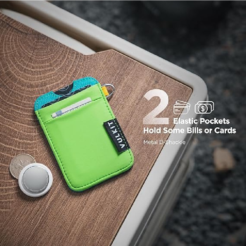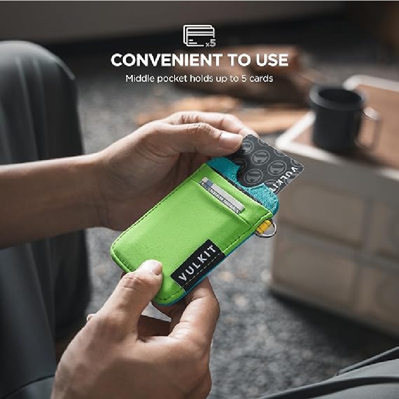 VULKIT RFID Blocking Slim Wallet, Elastic Pocket - Minimalist Card Holder for 5 Cards, Key Ring & ID Card Slot for Men & Women, Vibrant Green,