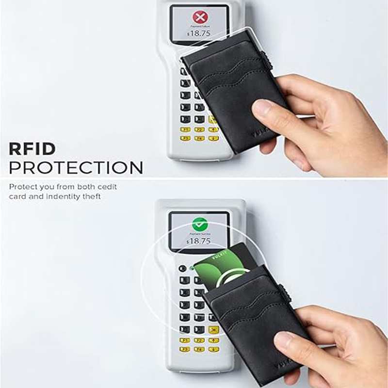VULKIT Pop Up Card Holder Slim Wallet with Extra Leather Slots RFID Blocking Metal Minimalist Card Case for Men or Women