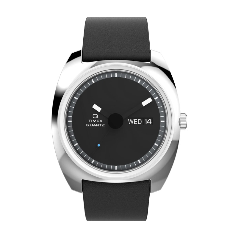 Timex Q 1975 Enigma Reissue Watch Silver Stainless Steel Band Blue Dial TW2W59800