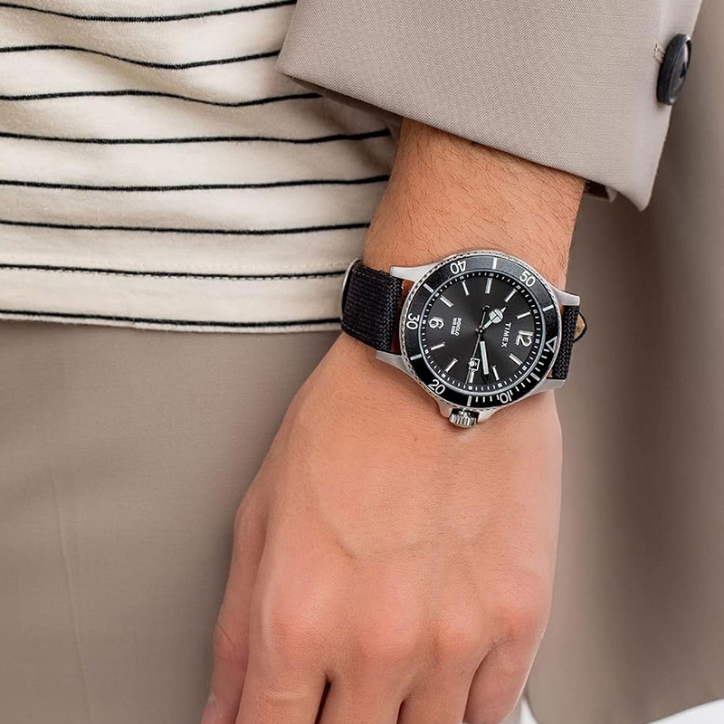 Timex TW2V27000 از نظر ظاهری حس خاص استحکام و مردانگی را القا میکند. وزن سبک، بند قابلتنفس و قاب مات باعث میشود ساعت در استفادههای طولانی کاملاً راحت باشد.