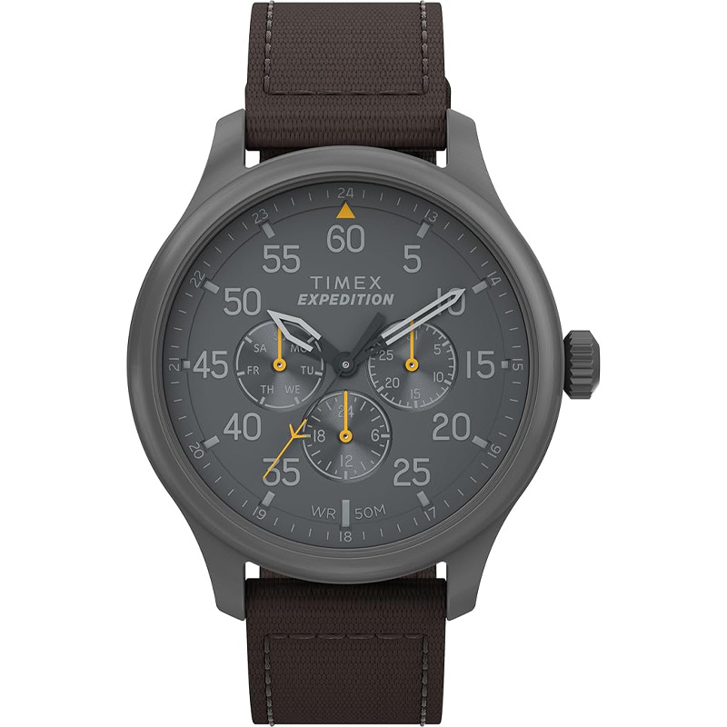 Timex Men's Expedition Field 43mm Watch, Brown Strap Black Dial Gunmetal Case