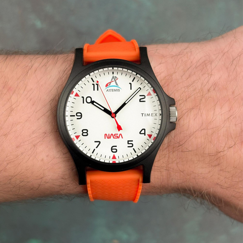 Timex Unisex Main Street 40 mm Watch - Orange Silicone Strap with White Dial and Black Case TW2Y13000