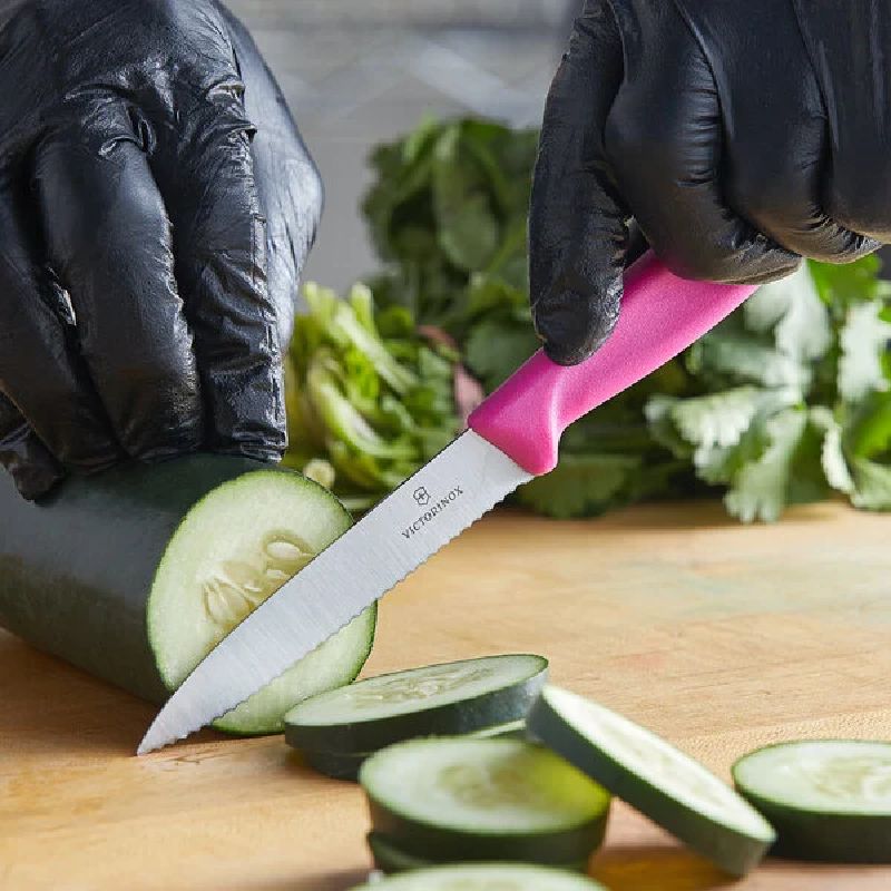 Victorinox 6.7736.L5 Swiss Classic 4" Serrated Spear Point Paring Knife with Pink Handle