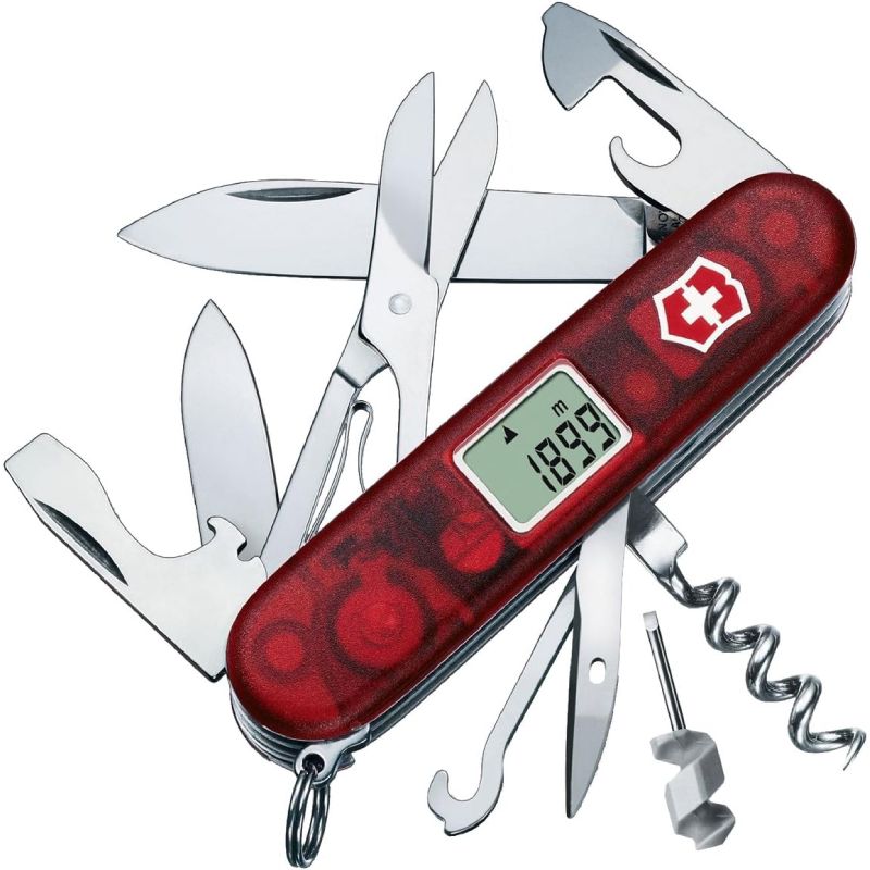 Victorinox Traveller Swiss Pocket Knife, Lightweight, Multitool, 28 Functions, Corkscrew, Large Blade, Display, Transparent Red