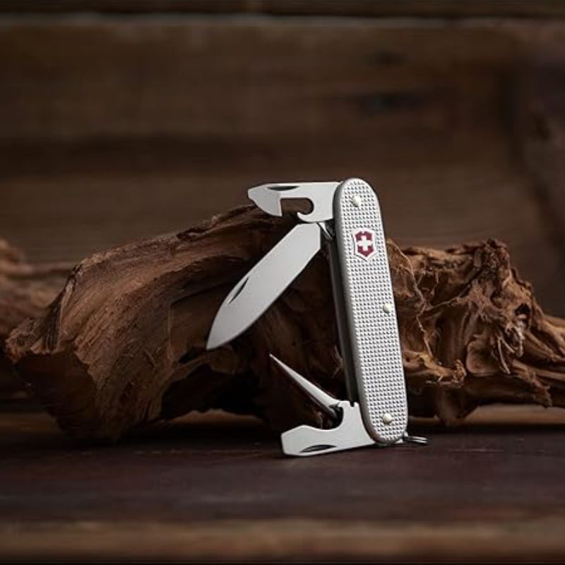 Victorinox Pioneer Alox Pocket Knife (8 Functions, Goose Erase Belt, Blade, Can Opener, Bottle Opener) Silver