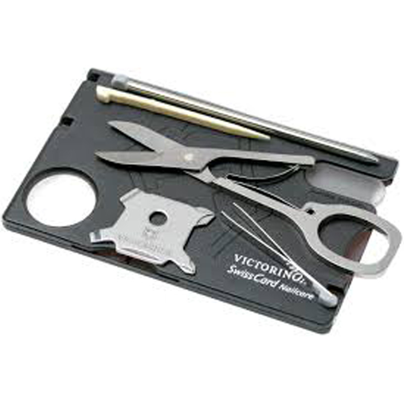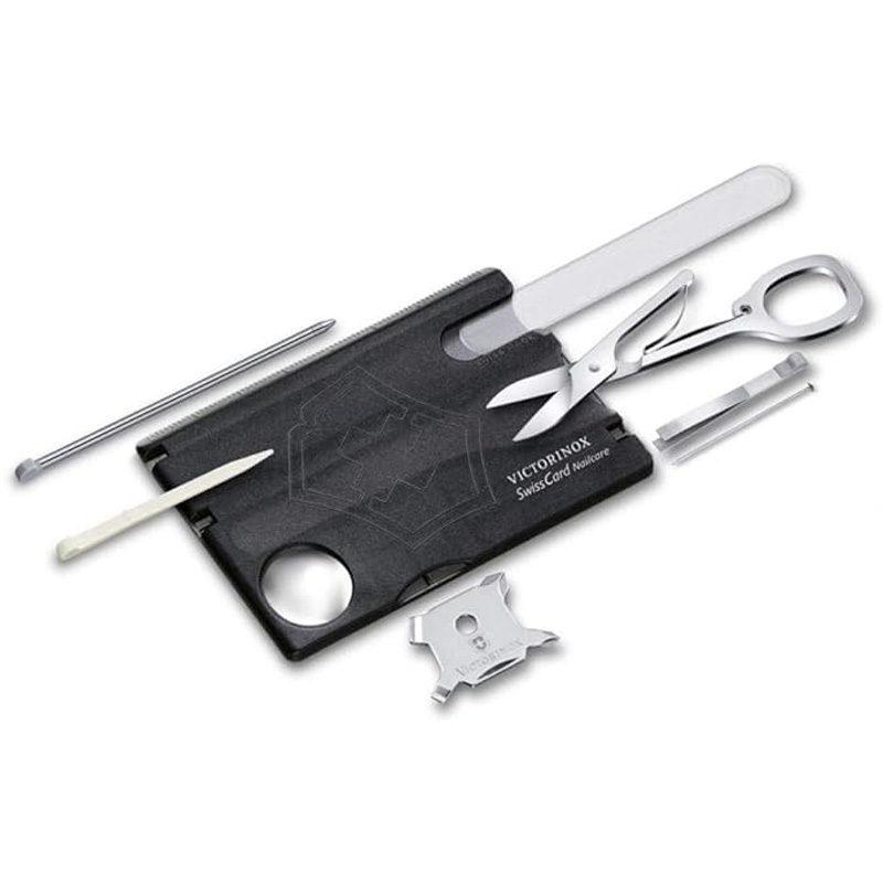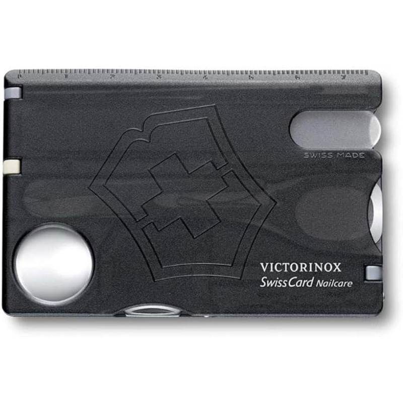 Victorinox Swiss Card Nail Care, Swiss Made Pocket Tool, Credit Card Size, 13 Functions, File, Scissors, Black Transparent