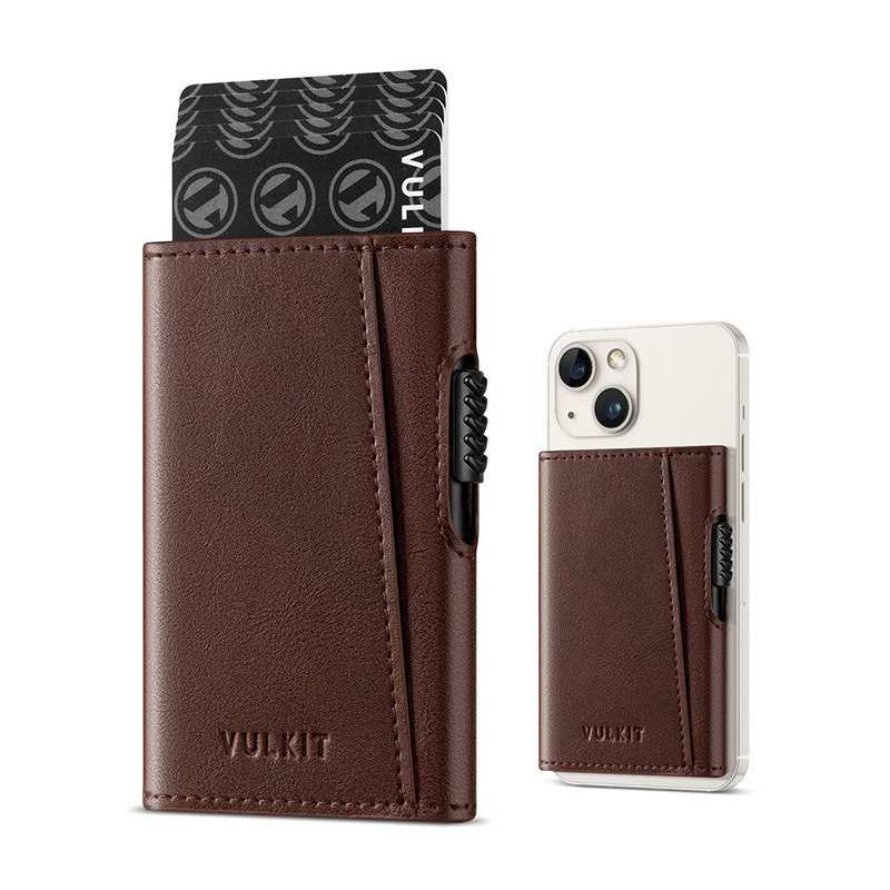 VULKIT Pop up Card Wallet RFID Blocking Slim Aluminum Metal Bank Card Holder Case with Business Money Pocket for Credit Cards Notes and Coins (Espresso)