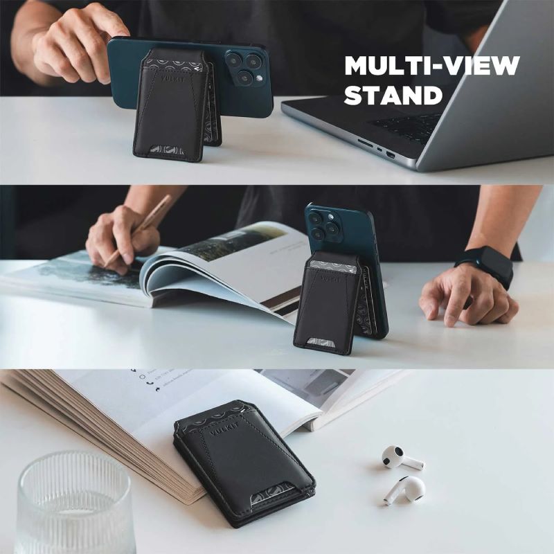 VPA109-Magnetic RFID Leather Phone Wallet with Adapted Magnetic Ring