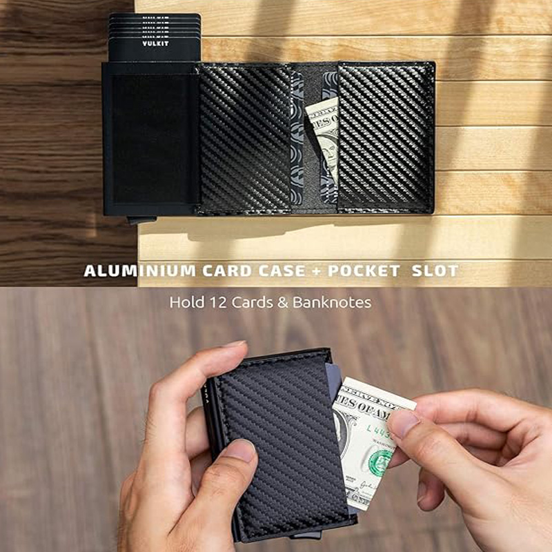 VULKIT Credit Card Holder for Men Leather RFID Protection Wallet Small with 3 Slots for 5-7 Cards & Money