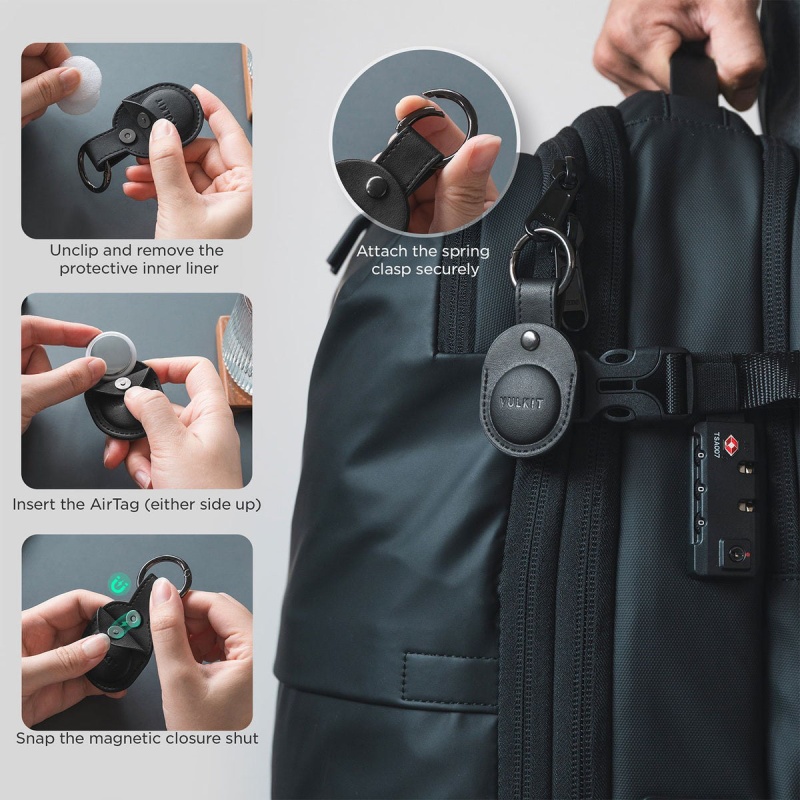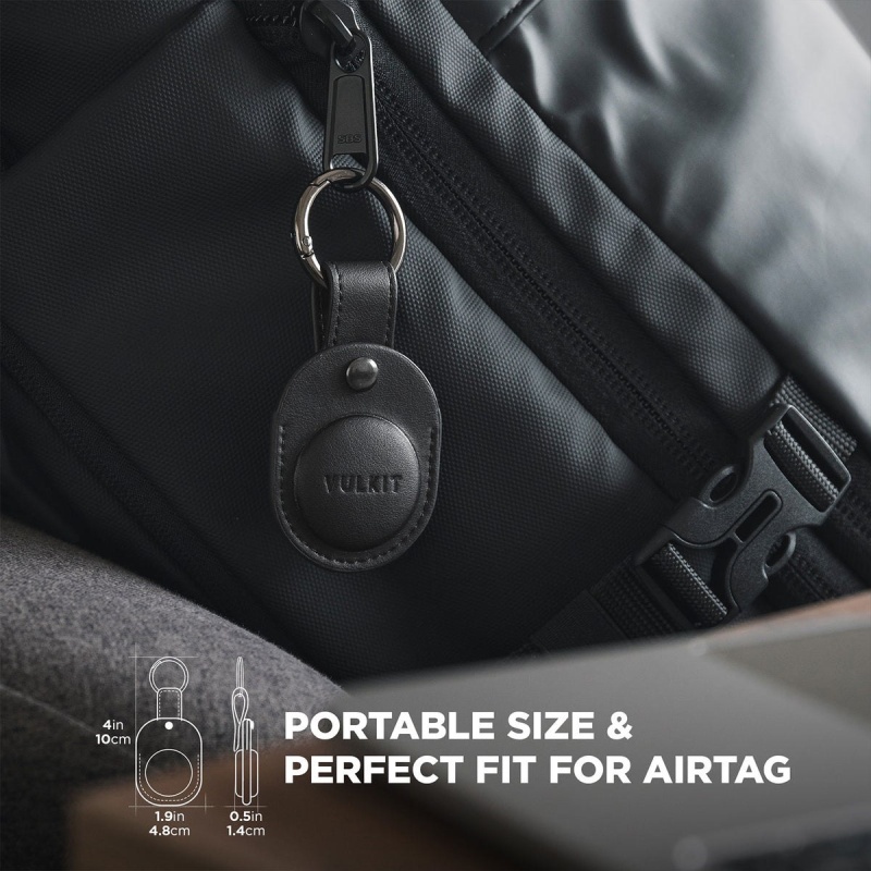 VULKIT for Air Tag Holder Keychain Full Coverage Protective Case Compatible with Air Tag, Nappa Leather
