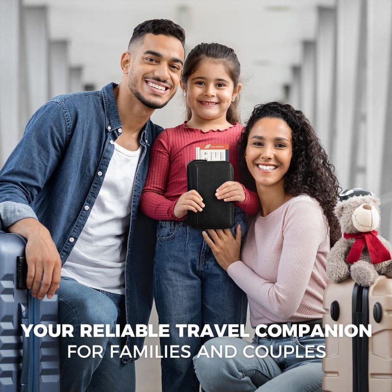 VPW107 - RFID Blocking Family Passport Holder for 4-8 Passports, Zipper Travel Wallet & Document Organizer