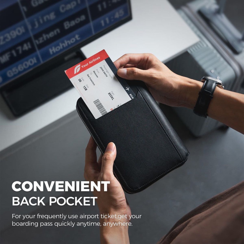 • دارای بخش‌های تفکیک‌شده برای پاسپورت، کارت‌ها، بلیط و اسکناس